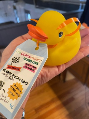 To participate, adopt a duck or a flock and cheer on your ducks as they sail through the river to the finish line. One lucky duck will win the first place price of $1000.00, second place winner $500.00 and third place $250. Don't miss out on the chance to adopt one of our 4,000 racing ducks for the event. Will you adopt the lucky duck?